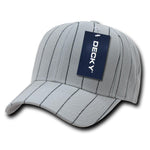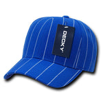 The Pin Stripe Baseball Hat - Decky 208 is a 6 panel constructed mid crown cap featuring a stylish pin-stripe design. Cap features sewn eyelets, a pre-curved bill and is finished with a hook & loop closure for a great fit.
