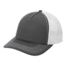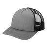 • 100% cotton twill front panels and bill (Solids), 65/35 polyester/cotton twill (Heather Grey), 100% polyester mesh back panels