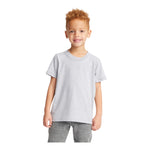 This toddler crewneck tee offers a soft, comfortable fit crafted from 100% combed ring-spun cotton, with Heather Grey featuring a 90/10 cotton-polyester blend. Designed for durability and everyday wear, it features quality stitching and a tear-away label for added comfort. Made in the USA.